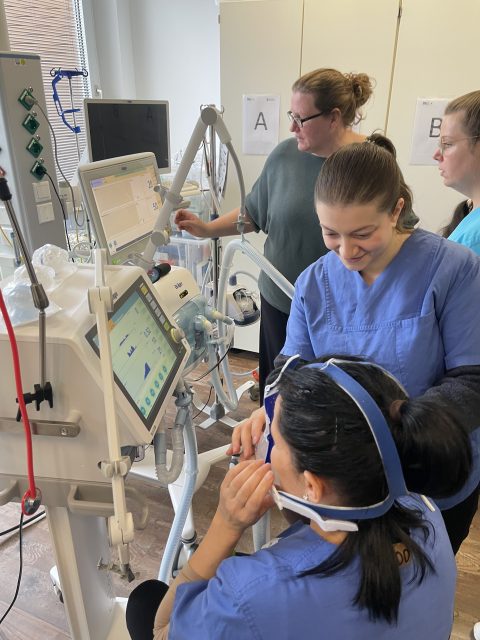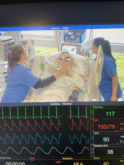 Die Teilnehmer*innen vertieften ihr bereits im Unterricht und Praxis erworbenes Wissen zu Atemwegsmanagement, Beatmung, NIV und High-Flow-Therapie in praxisnahen Fallbesprechungen, Übungen und Selbstanwendungen.